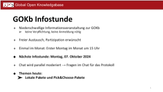 • Haben Sie ein Thema, das Sie gern besprochen haben möchten, für die nächste Infostunde? Dann schreiben Sie uns gern an info@gokb.org!