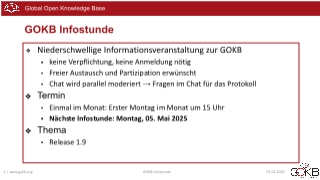 - Haben Sie ein Thema, das Sie gern besprochen haben möchten, für die nächste Infostunde? Dann schreiben Sie uns gern an info@gokb.org!