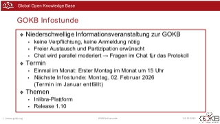 - Haben Sie ein Thema, das Sie gern besprochen haben möchten, für die nächste Infostunde? Dann schreiben Sie uns gern an info@gokb.org!