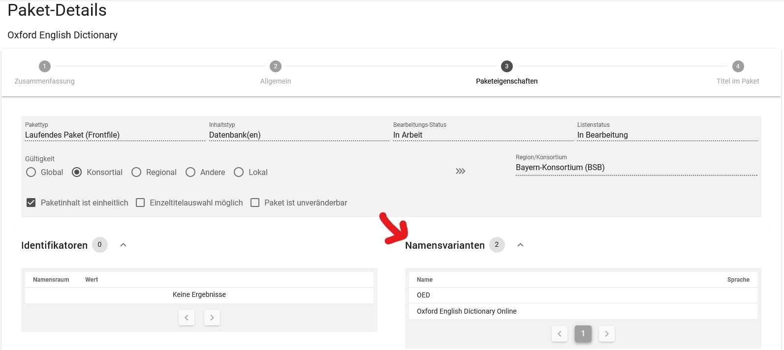 Alternative Namensform sollte eine Variante des Paketnamens sein (z. B. Abkürzung des Titels) und NICHT eine Variante des Anbieternamens!