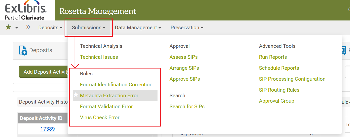 Treten nach der Einlieferung in Rosetta Fehler auf, liegt die Analyse und abschließende Entscheidung über den Umgang mit dem jeweiligen Fehler bei der einliefernden Institution, also dem Kooperationspartner. Die Datenhoheit verbleibt immer beim Kooperationspartner - dies umfasst die Entscheidungsgewalt über die einzuliefernden und eingelieferten Objekte und die Verantwortung für deren Datenqualität.