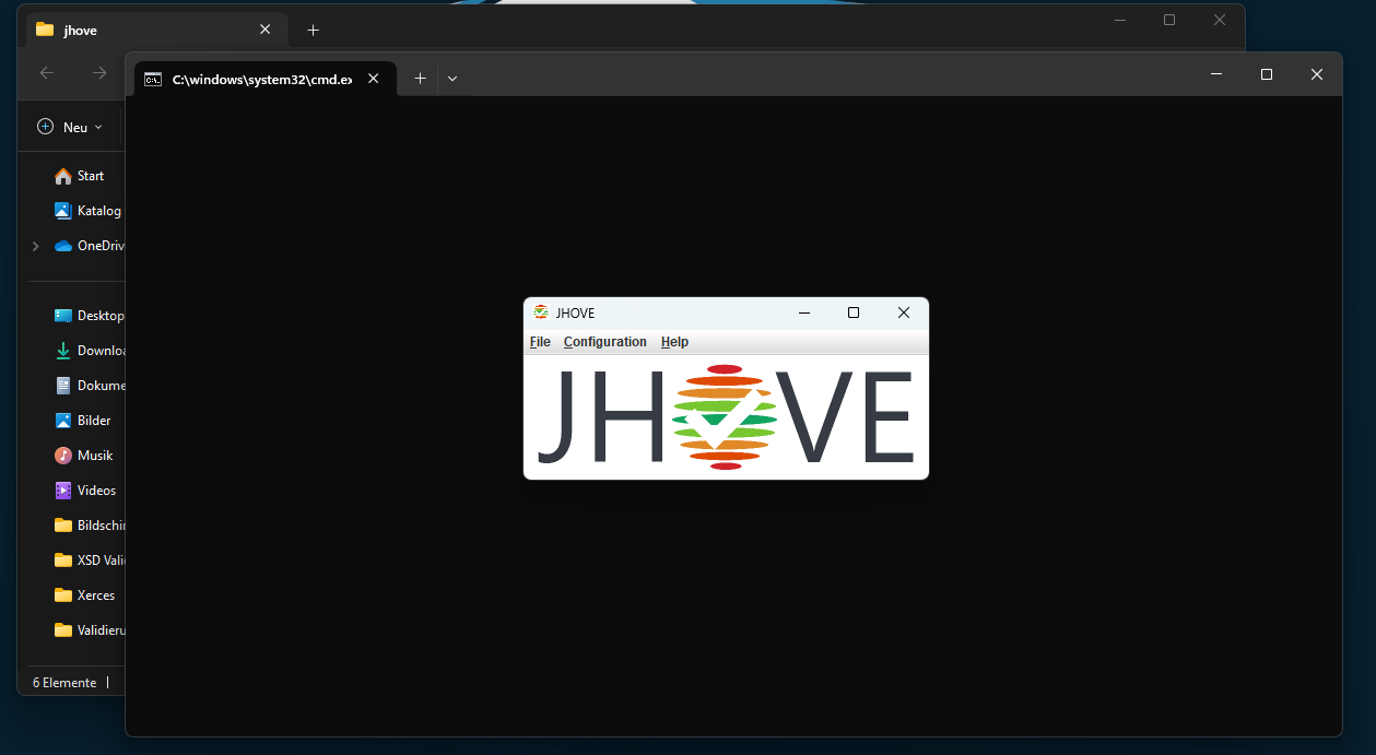 - Daraufhin öffnen sich die Konsole und die JHOVE-Benutzeroberfläche.