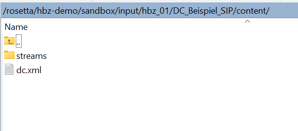 Beispiel für eine Dublin Core-Ordnerstruktur - auf der Ebene content, die den Inhalt des SIPs enthält