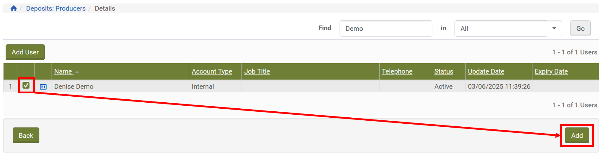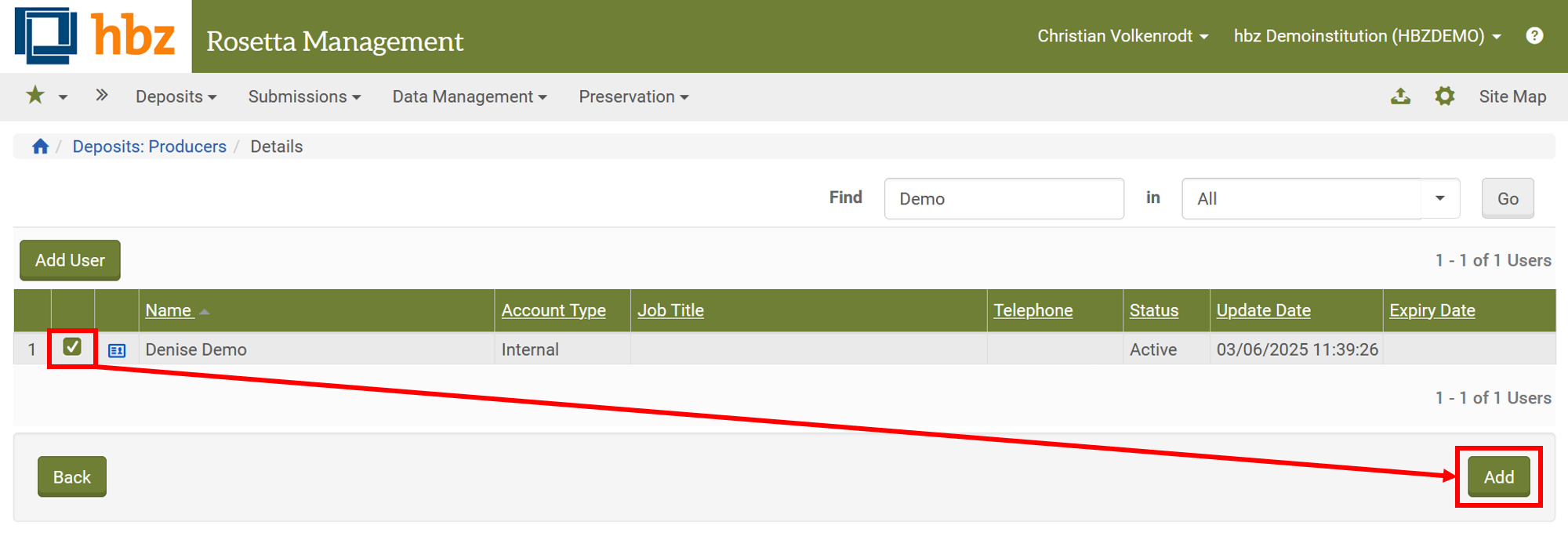 - User anhaken, die als Producer Agents hinzugefügt werden sollen