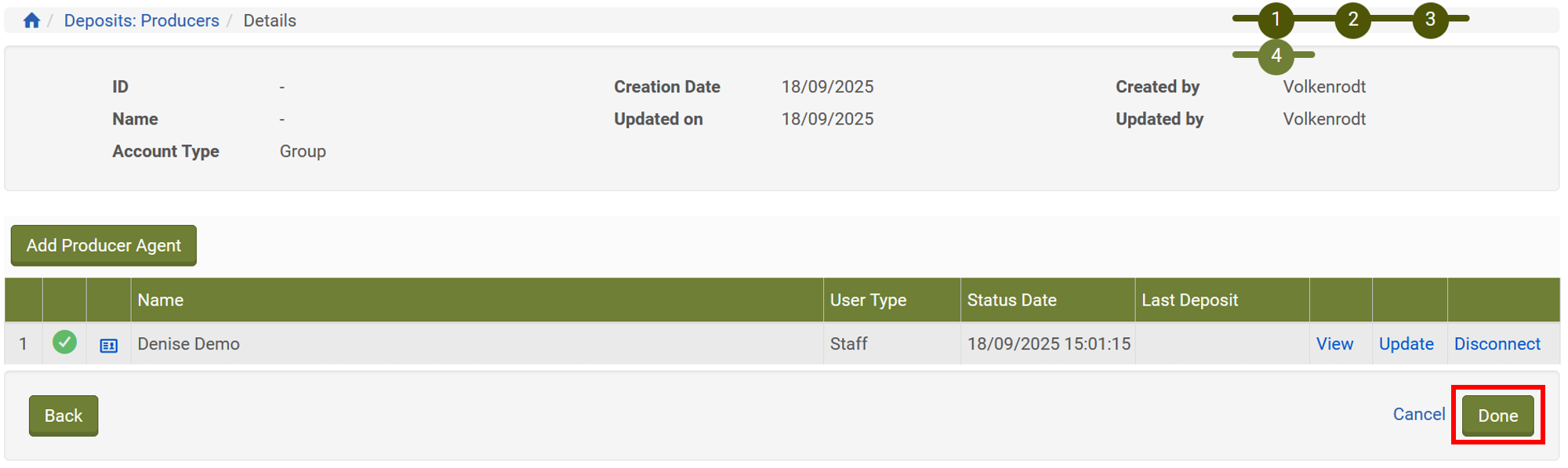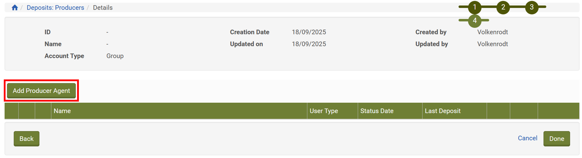 Ein neuer Producer kann unter Deposits → Producers and Agents → Producers angelegt werden.