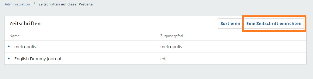 3. Klicken Sie "Eine Zeitschrift einrichten"