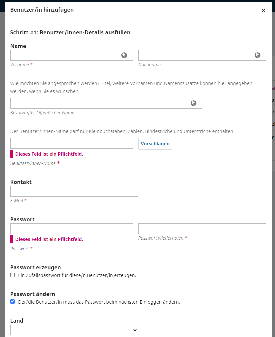 2. Klicken Sie "Benutzer/in hinzufügen". Tragen Sie die Daten ein. Sie können auch weitere Informationen hinzufügen, wie z.B. die ORCID-ID der Person.