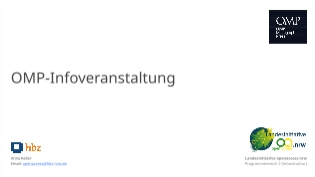 Am 6.2.2025 fand eine OMP Infoveranstaltung statt, bei der Gäste aus NRW Nutzungsweise und Einsatz der Open Source Software Open Monograph Press (OMP) an ihren jeweiligen Häusern vorstellten. Der Wunsch war u.a. auch, vor dem Hintergrund unterschiedlich starker personeller Ressourcen Einblicke in die Arbeitsweise und Workflows der Gäste zu bekommen. Die Gäste waren:
