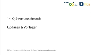 • nächstes Treffen DACH-weiter Austausch zum Journal-Hosting mit OJS am ; Thema: benötigte Vorlagen
