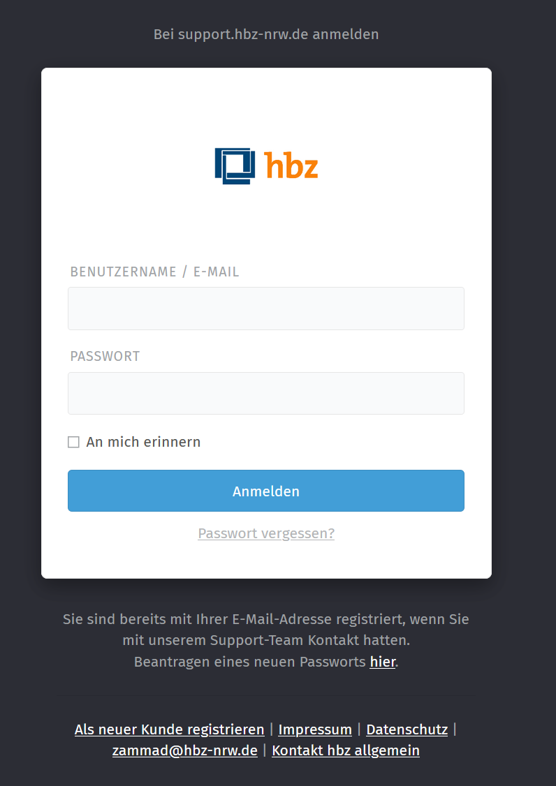 • Rufen Sie https://support.hbz-nrw.de auf