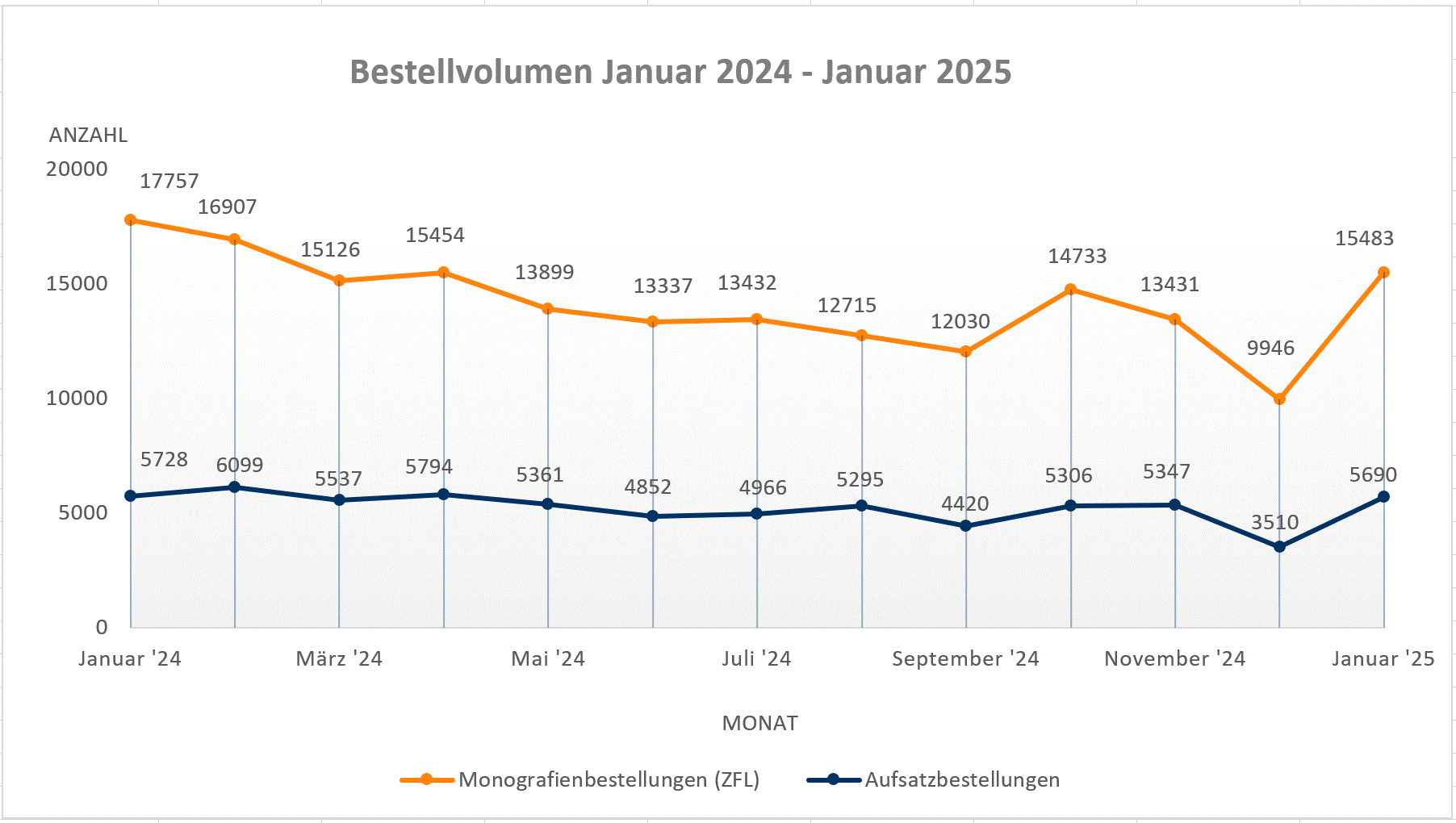 Gesamtzahl der eingegangenen Online-Fernleihen und Kopienbestellungen