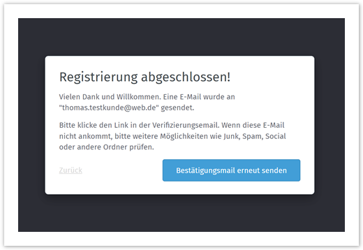 - Versendung einer Verifizierungsmail an die von Ihnen angegebene E-Mail-Adresse