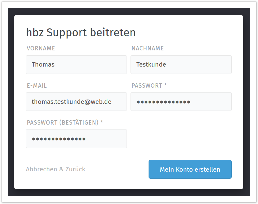 - Schicken Sie Ihren Registrierungswunsch durch einen Klick auf "Mein Konto erstellen" ab