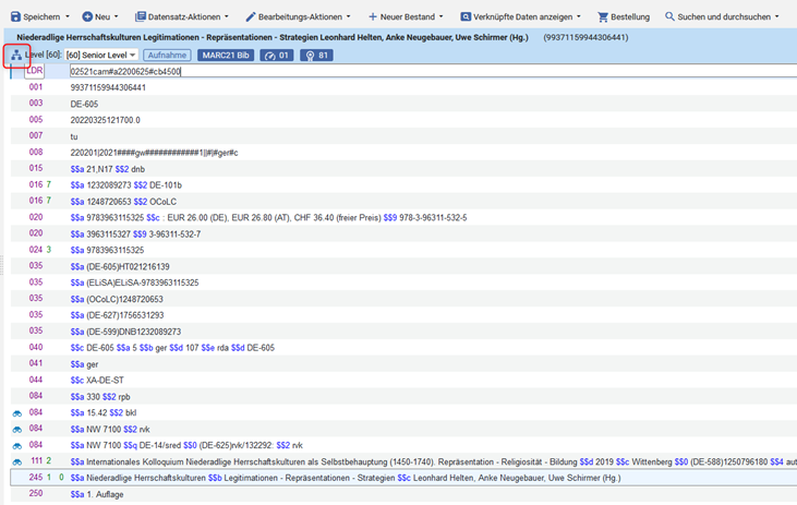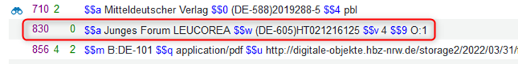 In diesem Fall besitzt der angebundene Titelsatz in der IZ ein lokales Erweiterungsfeld (local extension) 773, das im Titelsatz der NZ nicht zu sehen ist.