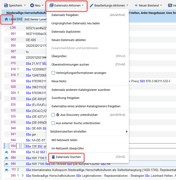 - Titeldatensatz aus der Netzwerkzone löschen