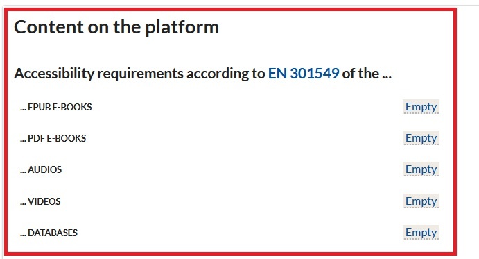 Angaben zur Barrierefreiheit des Contents auf der Plattform werden nach dem gleichen Muster angegeben, in dem eins