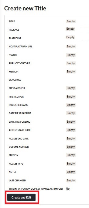 Klicken Sie auf Create and Edit, um den Titel zu erstellen und befüllen Sie die relevanten Felder, die danach bearbeitet werden können: