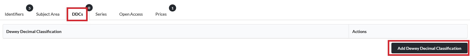 Im Reiter DDCs können Sie für Ihre Ressource auch eine Dewey Decimal Klasse auswählen für eine standardisierte Klassifikation des Fachbereichs/Themengebiets: