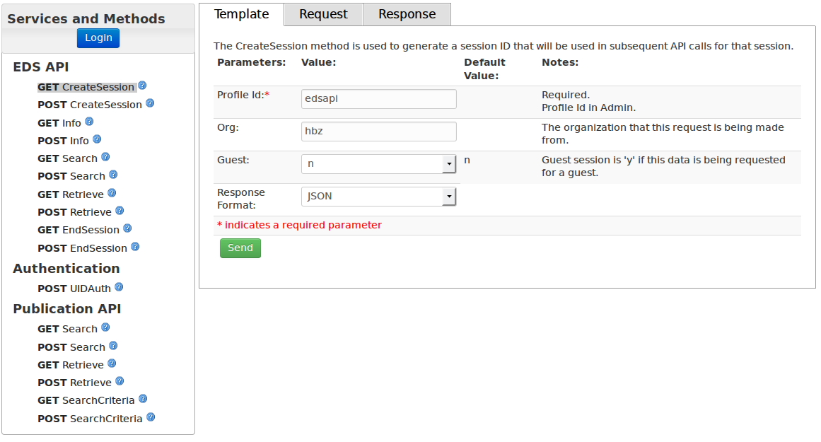 Seite: EDS API-Console